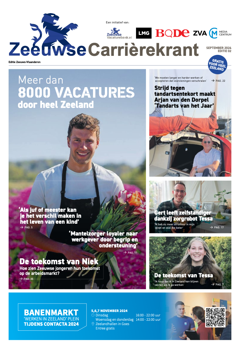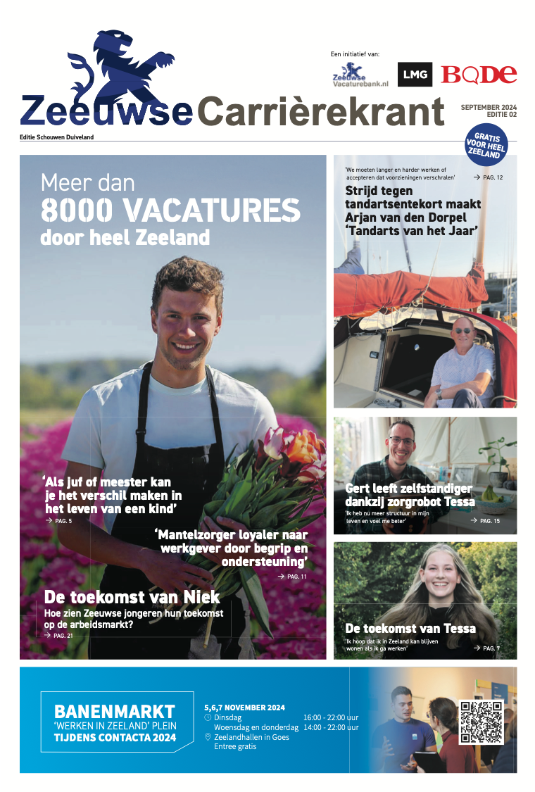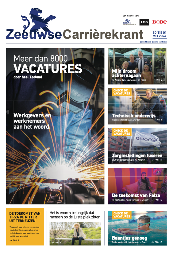 De Zeeuwse Carrièrekrant is een gezamenlijk initiatief van De Bode, LMG & ZeeuwseVacaturebank.nl en wordt huis-aan-huis verspreid door heel Zeeland én westelijk Brabant.